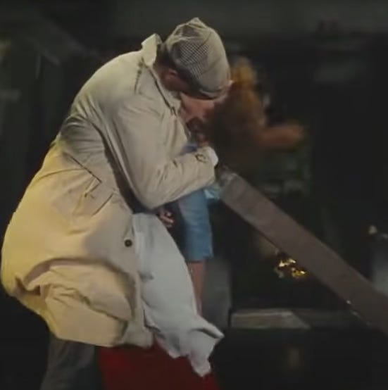 Mary Kate, ever conscientious, realizing how famished he’s going to be after the bout, and quickly runs home to make supper as Sean does what he was meant to do, kick the shit out of her brother. The fight lasts forever by movie standards, but disappointingly short by Irish standards, and the two finally make their peace and drunkenly go back to Sean’s house.